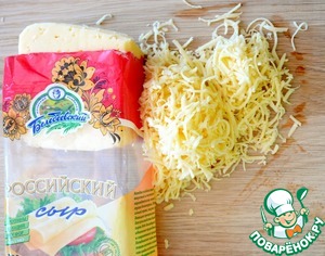 Для приготовления закуски берём твёрдый сыр. Я отдала предпочтение "Российскому" от Белебеевского молочного комбината.