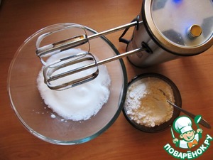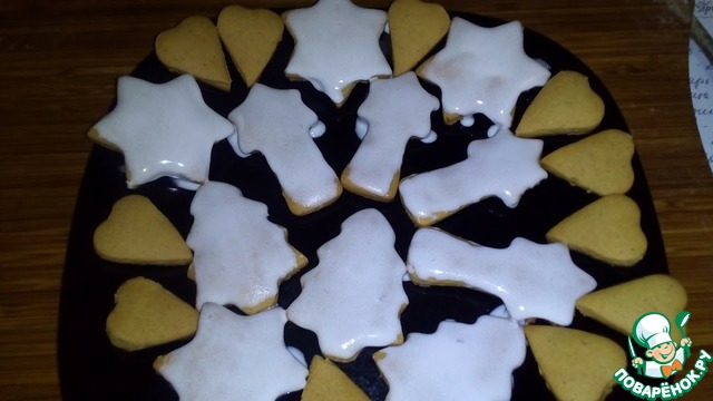 Пока выпекается печенье, сделать глазурь. Для этого взбить белок до мягких пиков вместе с лимонной кислотой. Постепенно добавлять сахарную пудру, непрерывно взбивая.