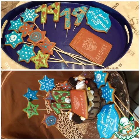 Выложить глазурь в кондитерский мешок с самой тонкой круговой насадкой. Украсить готовое печенье.