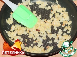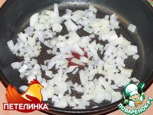 3. Разогреваем на чистой сковороде растительное масло (1 ст. л.), и обжариваем мелко порезанный репчатый лук до прозрачности.