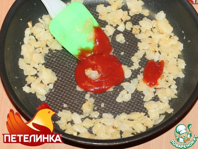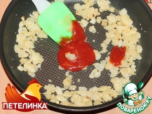 5. Не переставая перемешивать, добавляем томатную пасту, 1-2 минуты обжариваем на тихом огне.