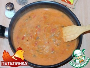 Добавляем томатную пасту, сметану, соль и перец, перемешиваем доводим до кипения.
