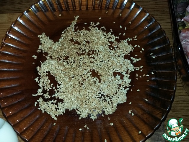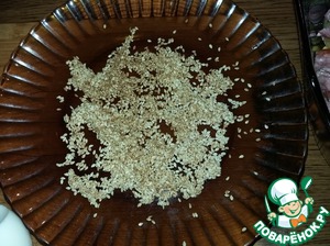 • На сухой сковороде обжариваем кунжут до золотистого цвета.