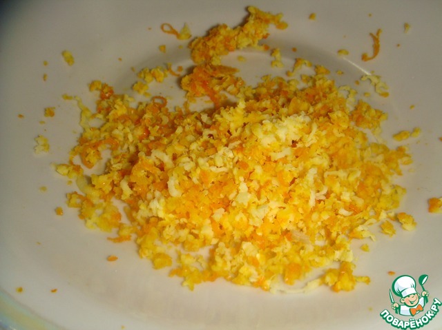 • Апельсин хорошо вымыть, снять цедру теркой и выдавить сок.