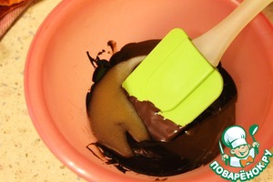 Растопить шоколад и масло, удобным для Вас способом. Затем смешать их вместе.