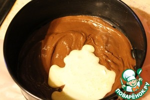 Не прекращая взбивать, добавить частями шоколадно-масляную массу.