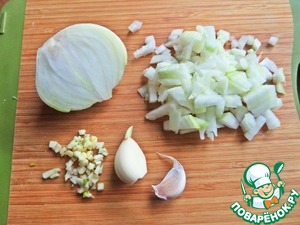 Лук, чеснок измельчить.
