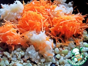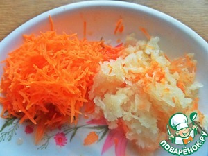 Морковку и кусочек патиссона мелко натереть.
