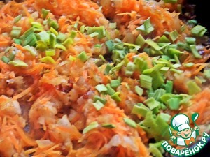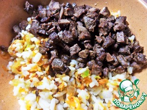 Пересыпать печёнку в начинку.