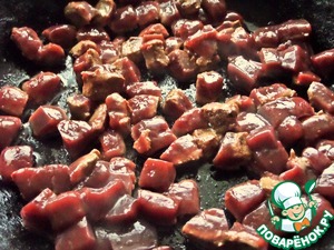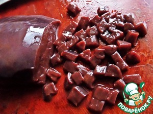 Или готовим из свежей печёнки. Нарезать кубиками.