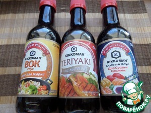 У меня всегда под рукой такие виды соусов от Киккоман, берём любой.