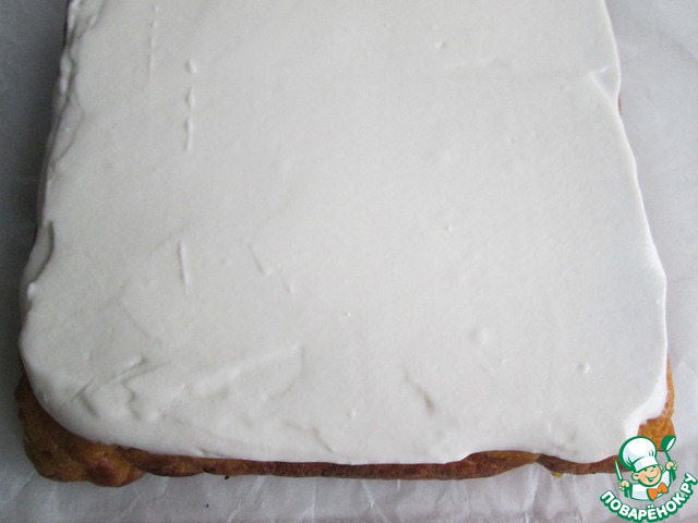 Смазываем корж кремом и даём ему застыть 30 минут.