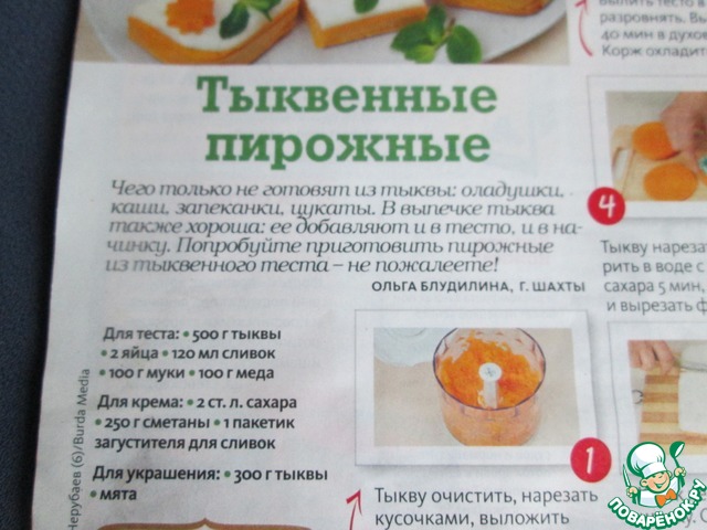 Рецепт «Тыквенные пирожные со сметанным кремом»: