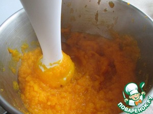 Откинуть тыкву на дуршлаг и дать воде стечь. Потом измельчить блендером и охладить.