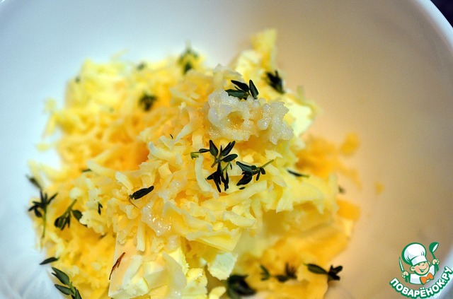 Добавить чеснок, пропущенный через пресс, листики тимьяна.