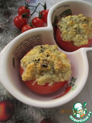 Хоть сейчас и не сезон помидоров, но на Новый год, я думаю, можно побаловать себя этой эффектной закуской! Это блюдо может быть подано как закуска или как гарнир! Сочные, нежные помидоры, а сверху хрустящая сырная корочка! Вкусно и очень просто!