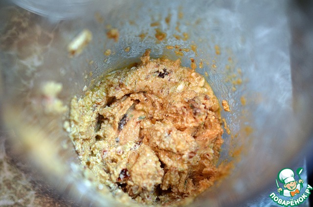• Пюрировать с помощью блендера. Если будет густовато, добавить ещё масла. Посолить, поперчить.