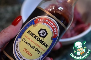Залить соевым соусом и дать постоять минут 20. Я использую натурально сваренный соевый соус ТМ Kikkomаn.