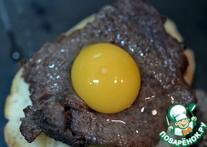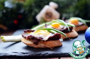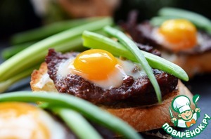 Рецепт «Брускетта с ростбифом и глазуньей»: