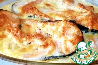 Рецепт «Горбуша запечeная с сыром и грибами»: