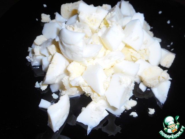 Яйца так же кубиками нарезаем (яйца можно как ингредиент пропустить, всё зависит от Вашего вкуса)