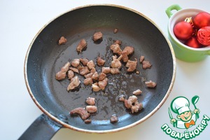 Раскалите на сковороде масло. Свинину нарежьте мелко и обжарьте 2-3 минуты, чуть посолите