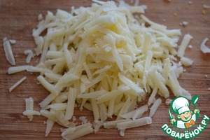 Натрите на мелкой терке сыр. Я использовала "Российский" от Белебеевского молочного комбината