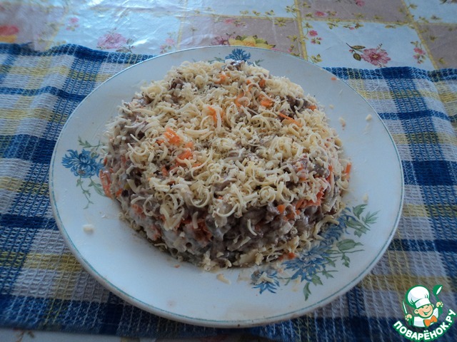 Посыпьте салат сыром, и можно подавать! С новым годом!