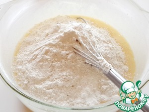 Всыпьте муку с разрыхлителем и ванильный сахар.