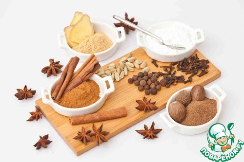 - Смесь специй (Имбирь, корица, мускатний орех, гвоздика, кардамон, кориандр, душистый перец) — 2 ст. л.
