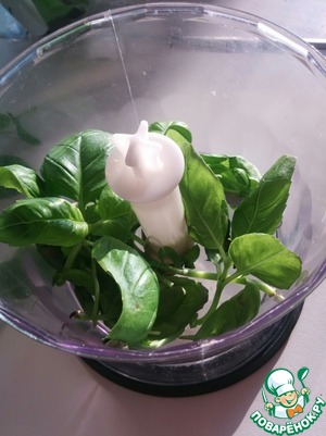 В блендере смешиваем базилик с остудившейся массой.