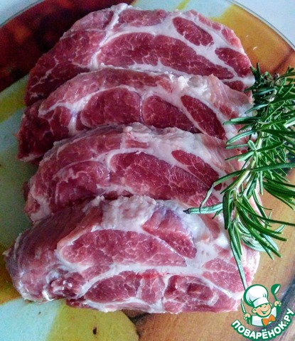 Описание: Овощи, пироги, салаты... Как бы женщина ни старалась, а настоящему мужчине нужен кусок мяса! Как на счёт свиного стейка? Розмарин украшает вкус мяса и придает блюду особую пикантность. Стейк получается очень сочным и ароматным.