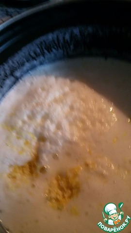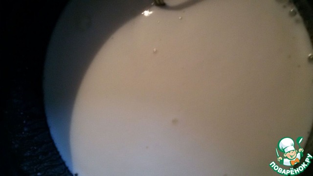 Наливаем кефир в кастрюлю и немного его подогреваем, чтобы улучшить реакцию кефира с содой, но главное его не перегреть, кефир должен быть немного теплым. Добавляем соду в кефир, хорошо перемешиваем и ждём пять минут.
