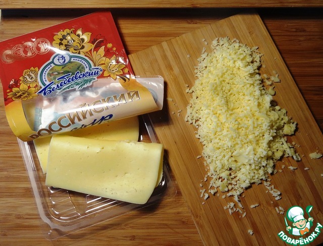 Российский сыр Белебеевский натереть на мелкой терке.