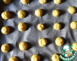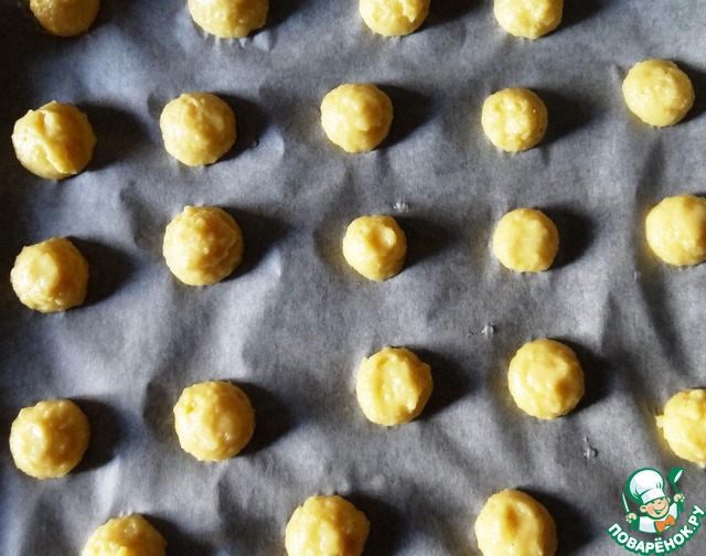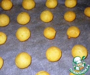 Отсадить на противень маленькие профитроли. Не больше 2 см.