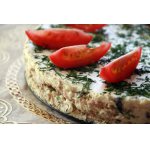 Присыпать торт сырным "снегом" и украсить тимьяном.