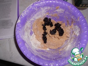 • Замесить тесто. Ввести вяленую вишню, замесить ещё раз.