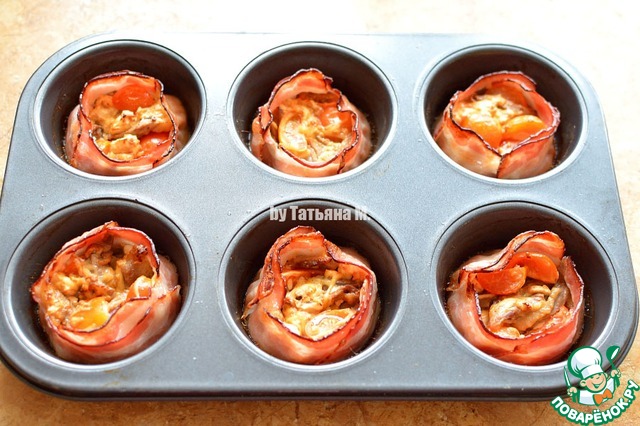 Запекать при 200 градусах до хруста бекона и подрумянивания начинки;