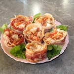 Невероятно вкусная порционная закуска на хлебце в беконе! С начинкой можно экспериментировать, но все ж рекомендую попробовать сначала ту, что предлагаю я - вкусно, ароматно, аппетитно!