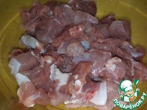1. у меня была ножка индейки, поэтому я отделила мясо от кости и порезала на небольшие кусочки.
