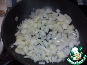 3. разогреваем сковороду и первым делом кидаем туда лук. Жарим около минуты, чтоб только сок пустил