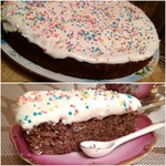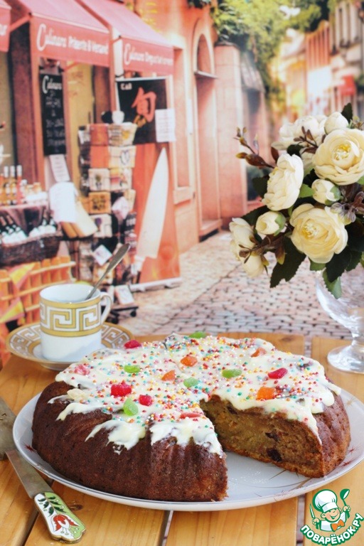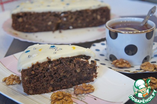 Обмазать верх пирога глазурью, украсить посыпками или орехами и дать глазури полностью застыть.