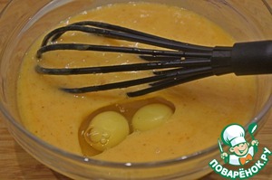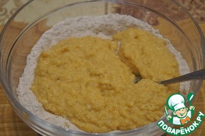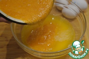 Я форму заранее не подготовила и, пока смазывала её и застилала пекарской бумагой, масляно-яичная масса с пюре их хурмы сильно загустела, почти застыла. -