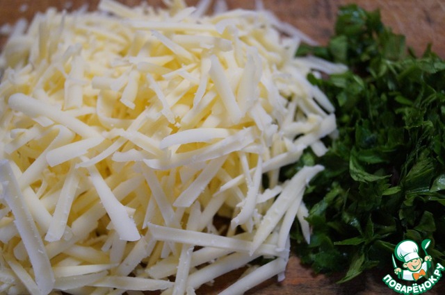 Сыр натрите на терке, а зелень петрушки измельчите.