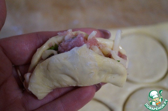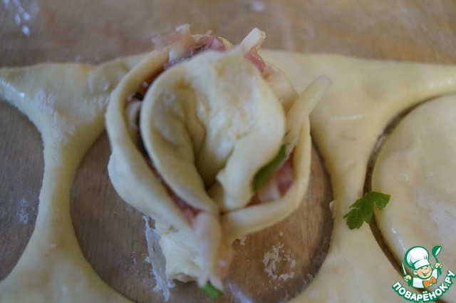 Затем края соедините. Получается очень похоже на пельмень - только открытый.