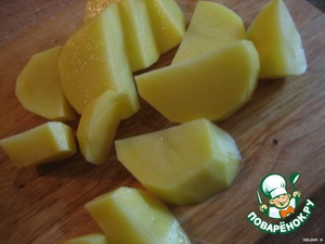 Поставить вариться мясо, порезанное как на гуляш, примерно на минут 40.