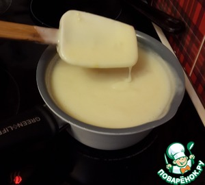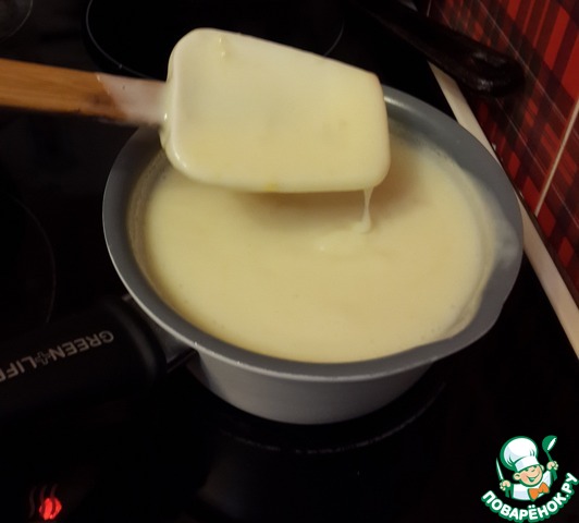 Мой рецепт таков: смешать 1 яйцо с 3 ст. л. сахара и 1 ст. л. муки, вскипятить 300 мл молока и тонкой струйкой влить яичную смесь, варить помешивая до загустения примерно 5 минут. Остудить под крышкой -