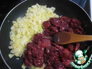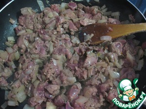 Печень немного обжарить и перемешать с луком, не передержать! Нужно чтобы печень просто схватилась.