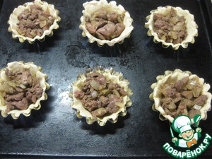 Теперь в тарталетки выкладываем печень