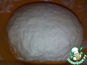 2. В теплую смесь добавить соль, сахар. Муку с дрожжами перемешанную, 2 стакана сразу, немного помесить и третий стакан добавлять в три этапа. Так все перемешается лучше. Замесить тесто. Поставить на 30 мин. в теплое место.